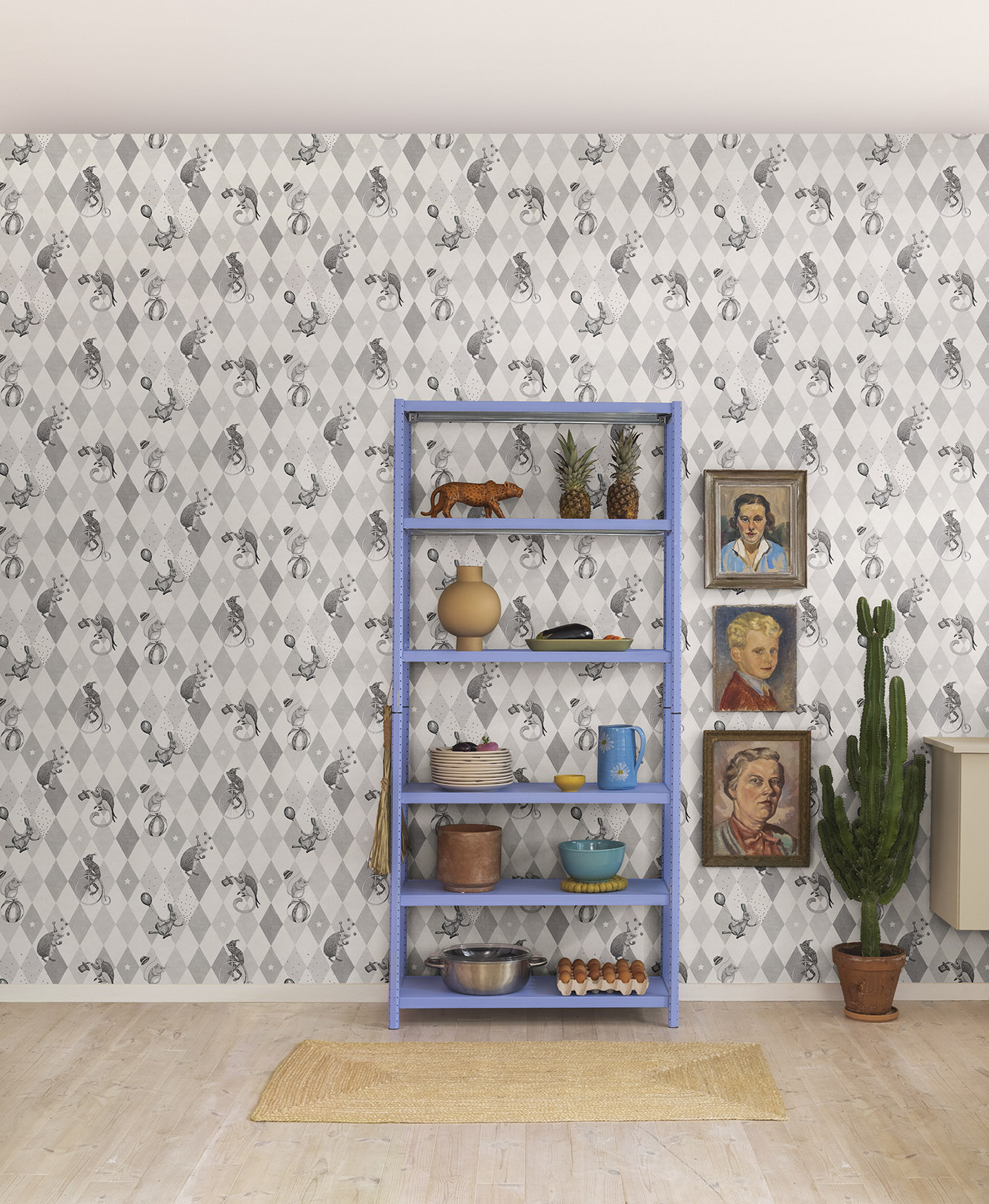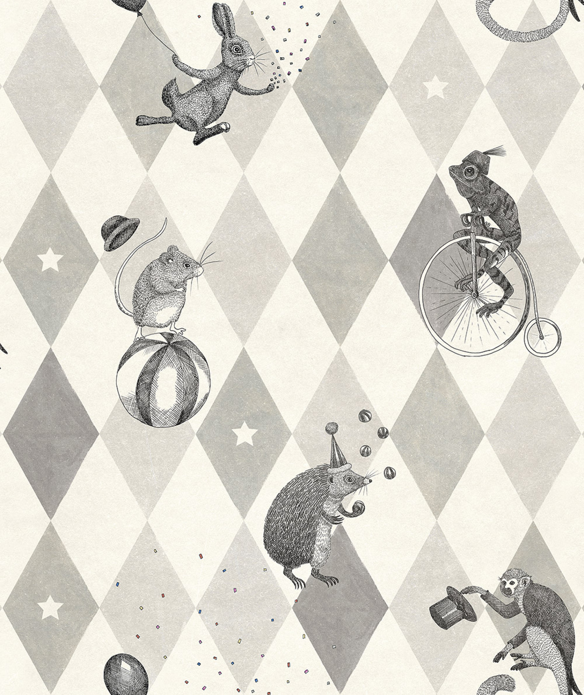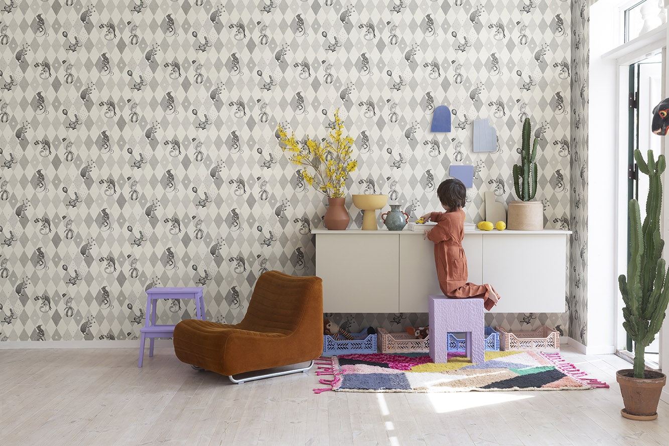 Tegul pasirodymas prasideda! Tik vaizduotė gali jus sustabdyti. Tapetų raštas „Circus Corner“ kviečia žaisti su drąsiais cirko gyvūnais.