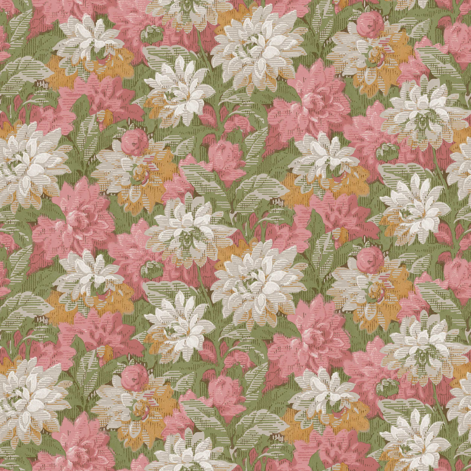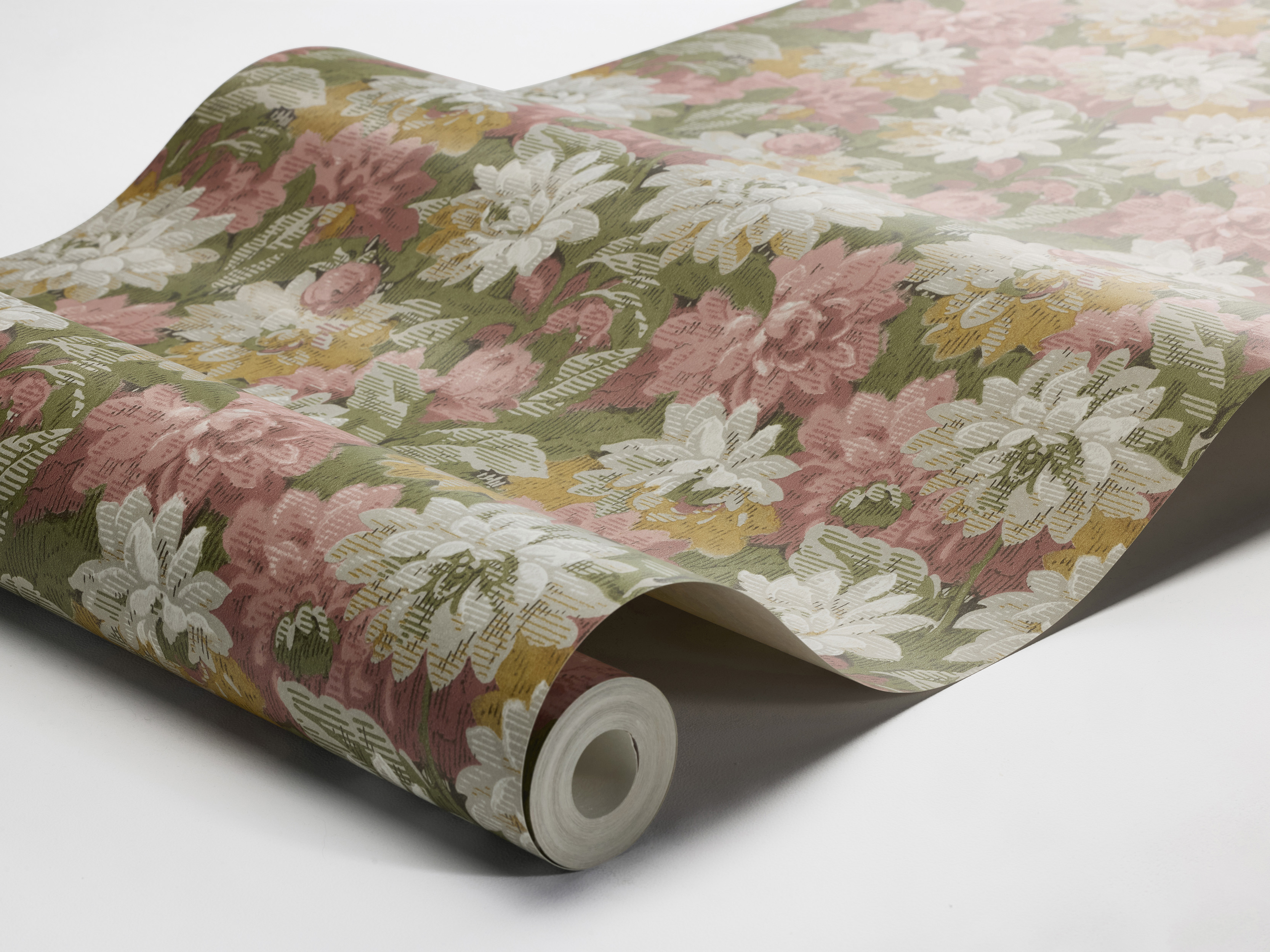 Iš mūsų archyvų atkurtas XX a. pradžios dizainas jungia sodrius gėlių motyvus su gobeleną primenančia tekstūra, atkartojančia subtiliai austų audinių įspūdį.