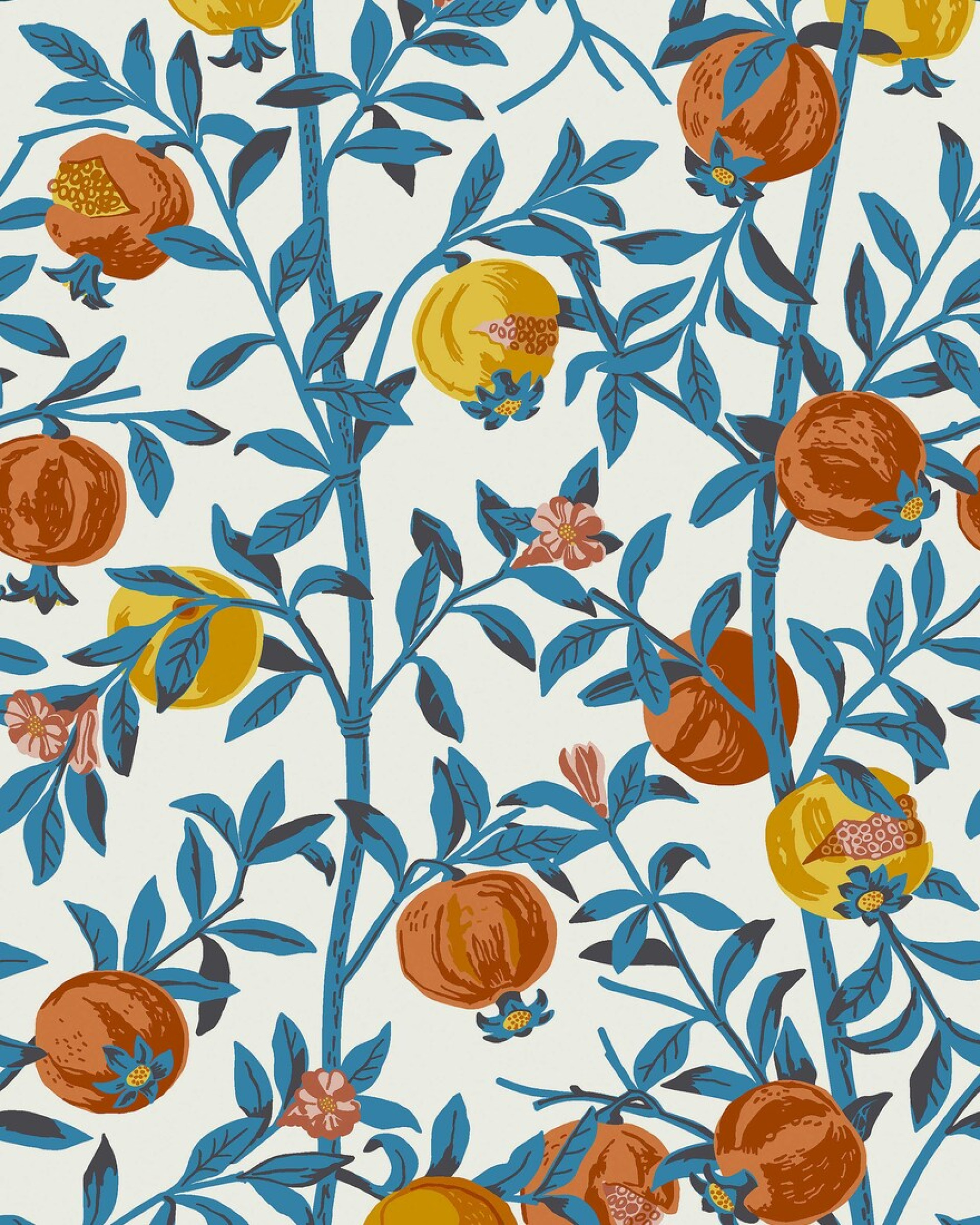 Šioje Granatäpple tapetų versijoje naudojami ryškūs mėlynos, geltonos ir oranžinės spalvų tonai ant balto fono. Pagerbdami Gocken Jobs meną, tapetai pagaminti naudojant perspaudimo techniką, kai spalvų sluoksniai susilieja ir atskleidžia naujus atspalvius tarp granatų vaisių ir grakščių lapų.