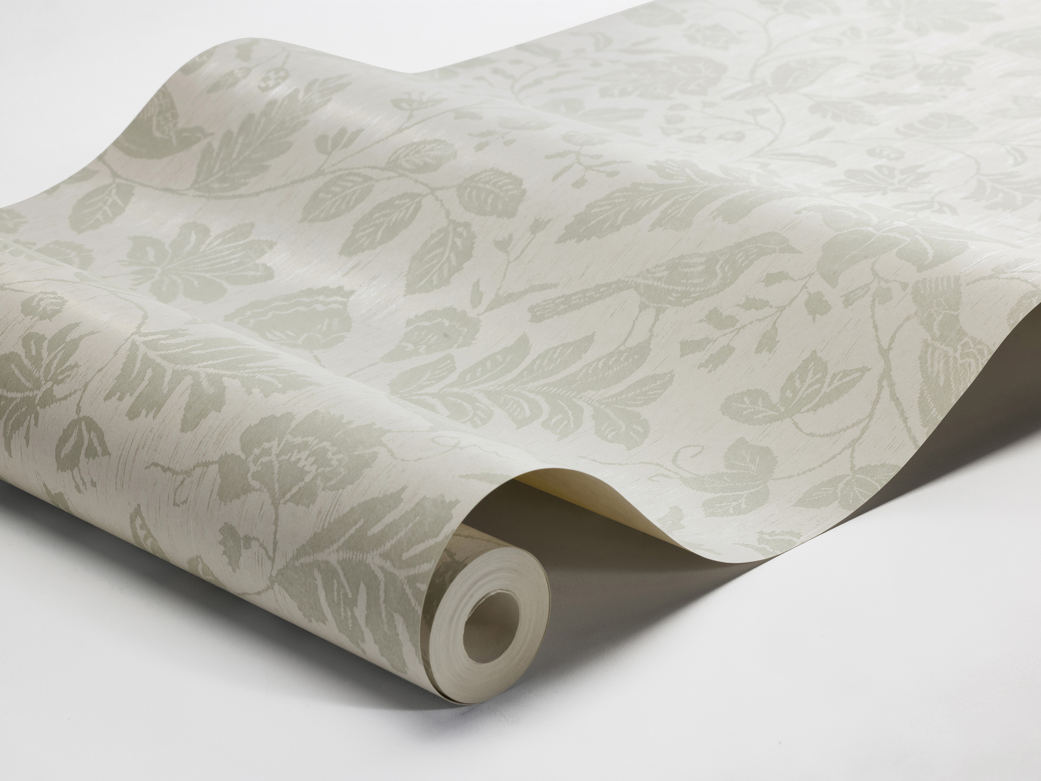 Ši „Isidor“ tapetų versija pasižymi šviesiais pilkai žalsvais tonais ant kreminės baltos spalvos fono su subtiliomis žvilgančio sidabro gyslelėmis. Raštą sudaro elegantiška paukščių, lapų ir žiedų kompozicija. Po raštu slypinti švelni tekstūra primena subtilų ryžių popieriaus meną ir suteikia sienoms minkštumo bei jaukumo.