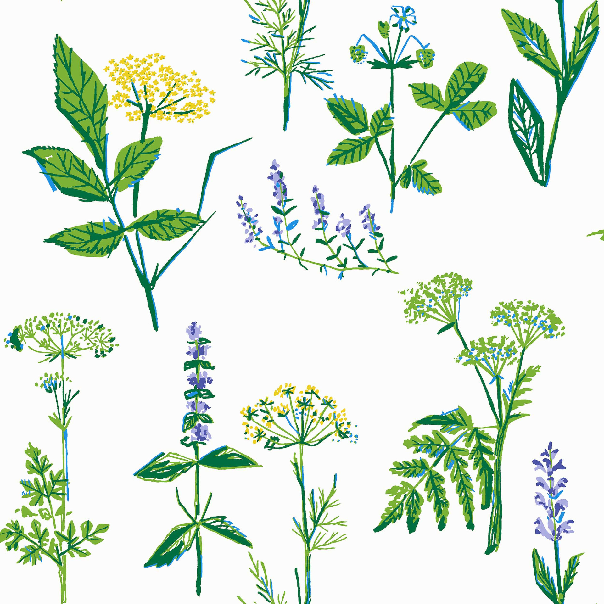 Švariame baltame fone „Köksväxter“ tapetai žaižaruoja žaliais, mėlynais ir geltonais tonais. Įkvėpti vešliai augančių virtuvės augalų, šį raštą XX a. šeštajame dešimtmetyje sukūrė Lisbet Jobs. Drąsi, tačiau natūrali spalvų paletė atskleidžia jai būdingą meno ir džiaugsmo derinį.