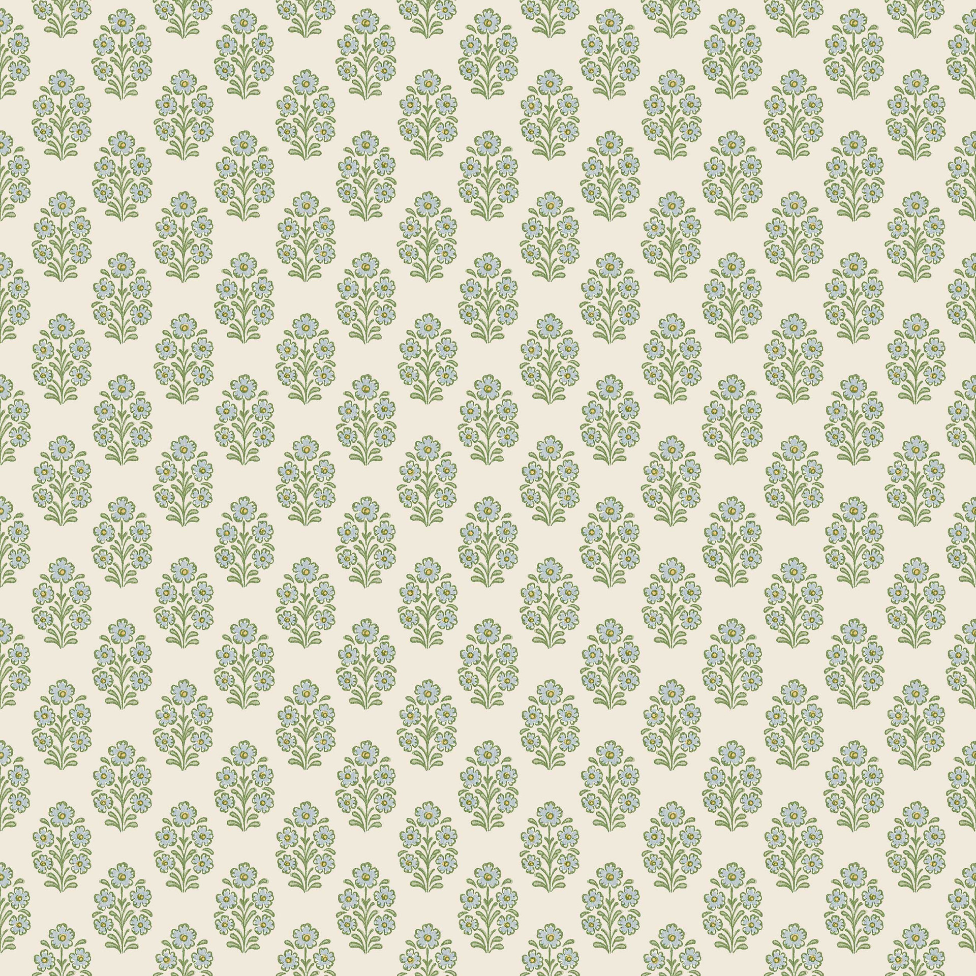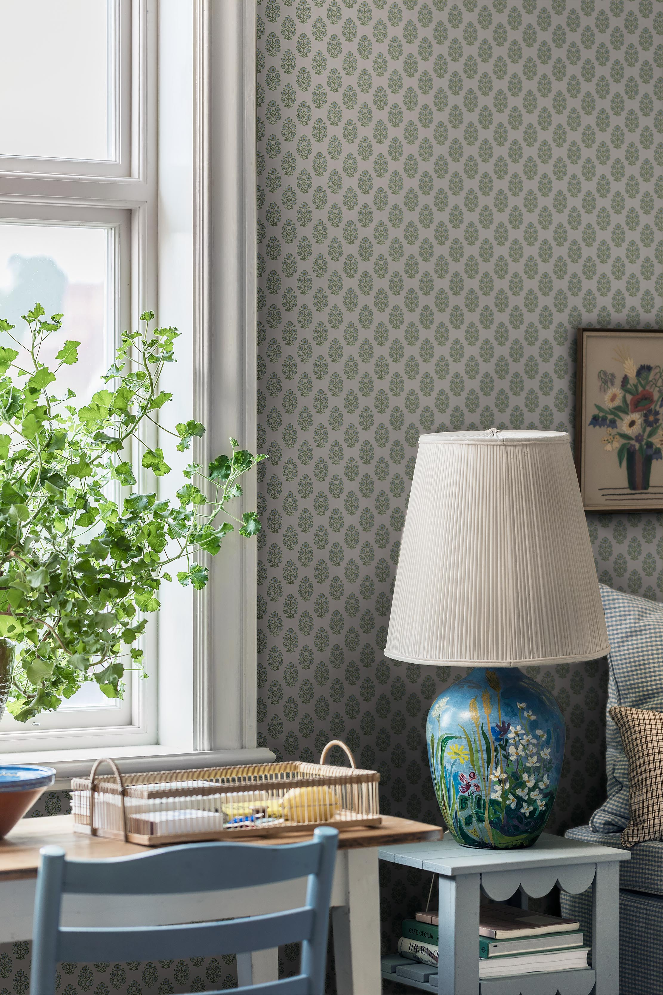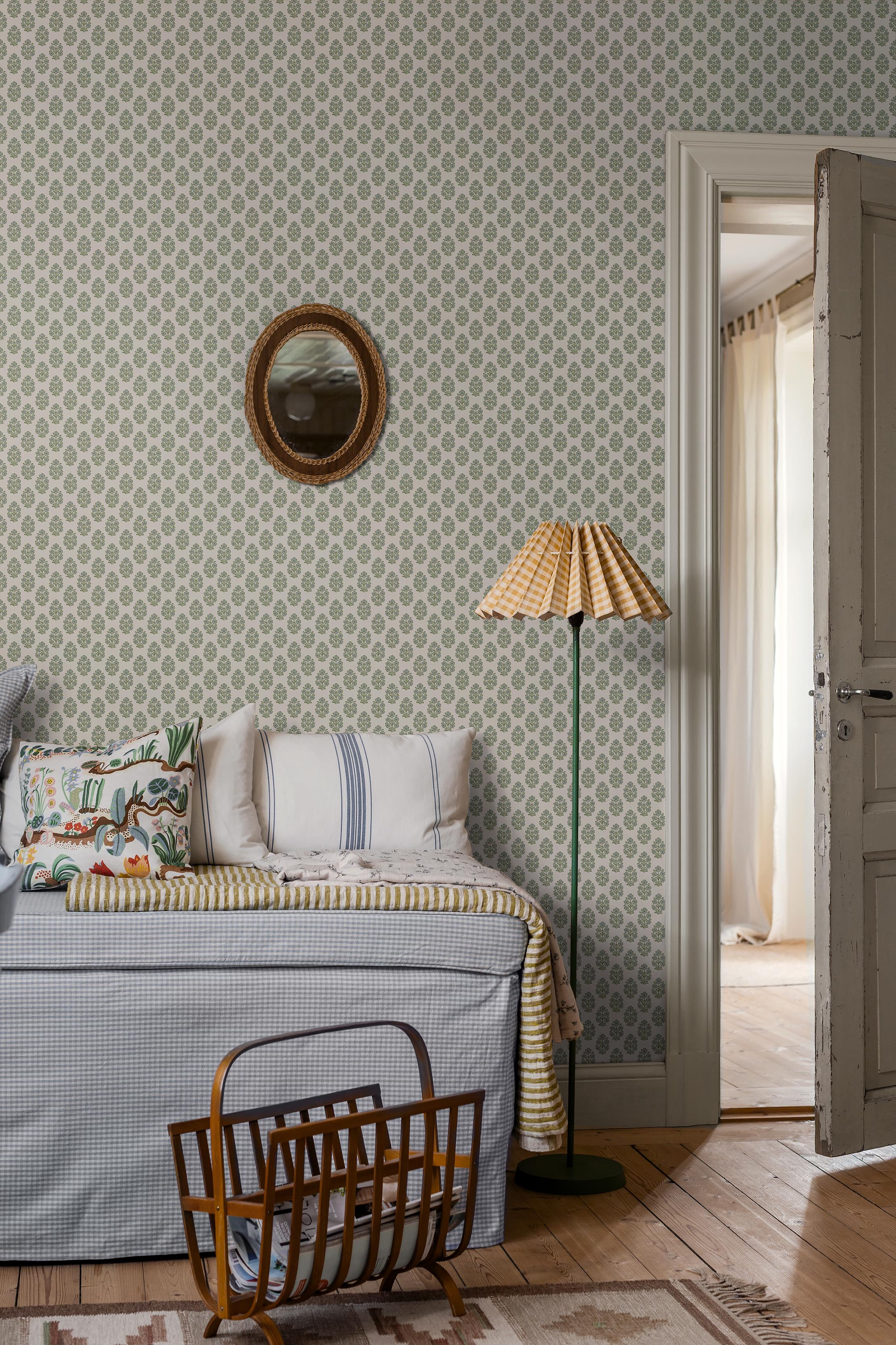 „Sibylla“ tapetai vaizduoja smulkias, mėlynas ir žalias ranka pieštas puokštes ant kreminio balto fono, sukurdami lengvą ir raminančią atmosferą. Dizainą sukūrė Jenny Hahne Gadd, o raštas atspindi tradicine blokine spauda spausdintų gėlių žavesį, išlaikydamas šviežumo ir modernumo pojūtį.